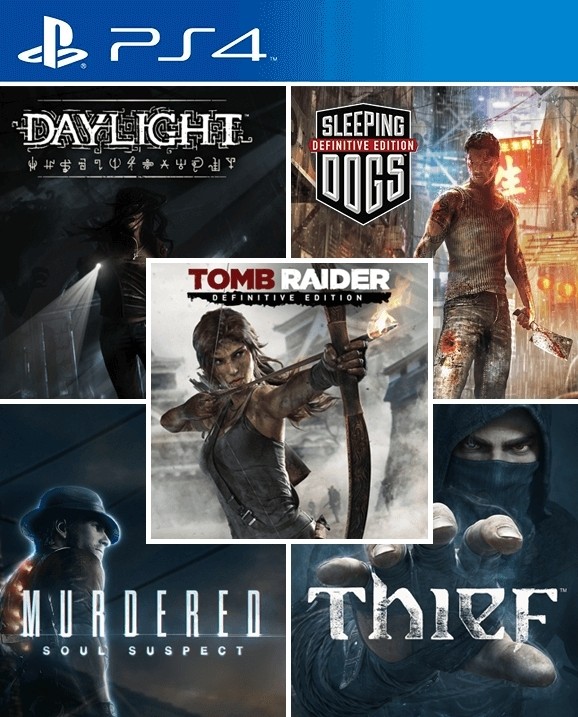 5 juegos en 1 Sleeping Dogs mas Thief mas Tomb Raider Definitive Edition mas Murdered Soul Suspect mas Daylight PS4