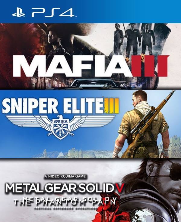 3 juegos en 1 Mafia III mas Sniper Elite 3 mas Metal Gear Solid V The Phantom Pain PS4
