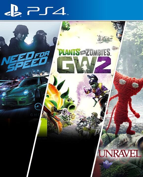 3 JUEGOS EN 1 Need for Speed mas Plants vs Zombies Garden Warfare 2 mas Unravel PS4